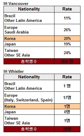 유학빈과 함께하는 캐나다어학연수~! 이달의 학비할인! IH 밴쿠버, 휘슬러 여름 프로모션 및 7월 국적비율 공지
