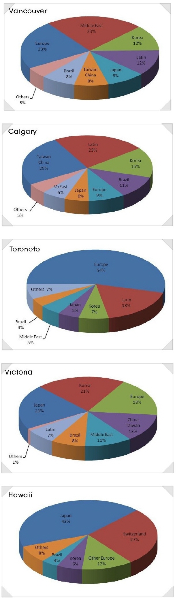 특히 그중에서도 GV의 인기센터인 밴쿠버센터가 현재 한국인비율 12%로 굉장히 낮답니다. GV 신청을 희망하는 분들은 아래의 최신 국적안내를 참고해주세요.
