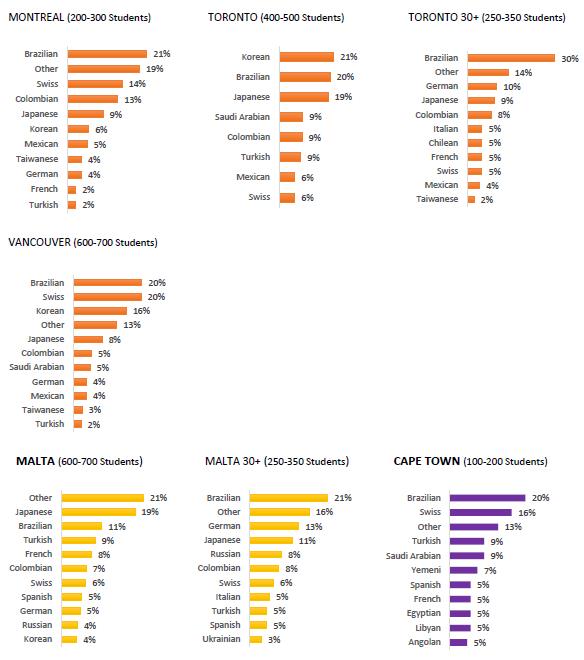 EC 어학원의 최신 국적비율 입니다. 미국, 영국, 캐나다, 몰타에 센터가 있구요, 한국인 비율이 낮은 어학원이랍니다. << EC 5월 국적비율 >> ======================