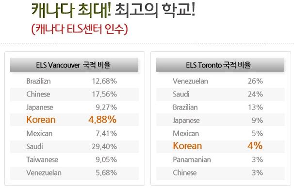 | [제목] ELS - 캐나다 (밴쿠버, 토론토) 호주(시드니) 센터의 국적비율안내 |