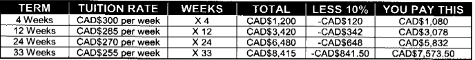 또한 VEC에서는 12주 이상 수업 신청시 주당 수업 가격이 인하됩니다. 24주이상~은 더 낮은 주당 수업 가격이 적용 되겠죠^^
