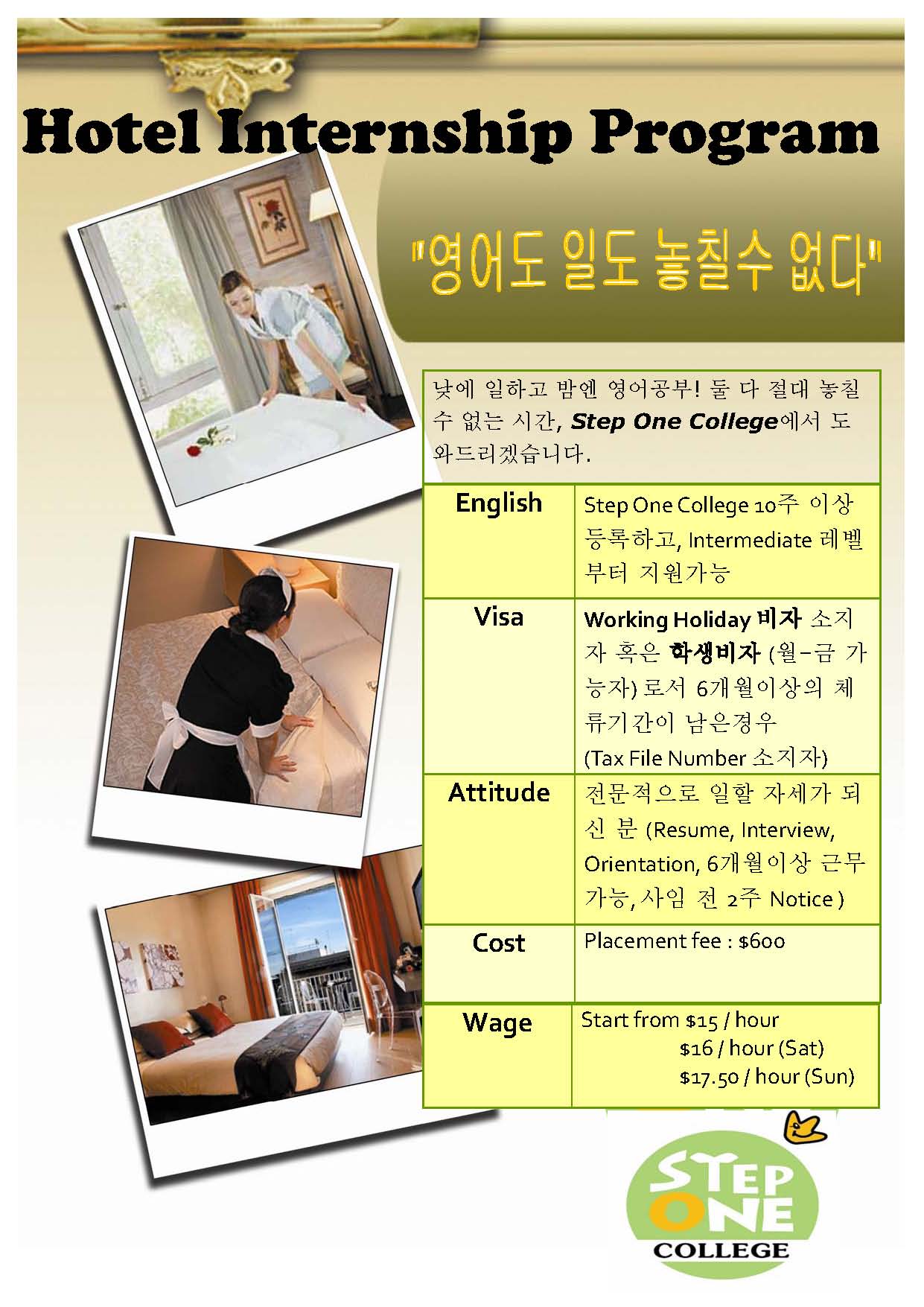 | [제목] 호주 Step One College -호텔 유급 인턴쉽 |