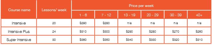 | Super Intensive(주당30레슨) | 매주개강 | 12주 | U$4200 |