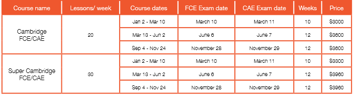 FCE or CAE: 4 Starting dates per year